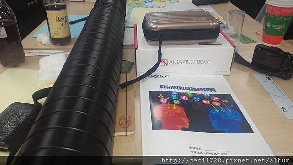 當天早上一到教室,發現桌上滿滿都是東西,其中還有一個讓學員尖叫的"RIMOWA"盥洗包,裡面裝的都是MJ老師的心血結晶,”談判“”銷售“”創意“”數字力“以及這堂課的全部教具,還加送一支大砲管,所有學員除了感念老師的不藏私外,更驚訝於老師的大手筆!